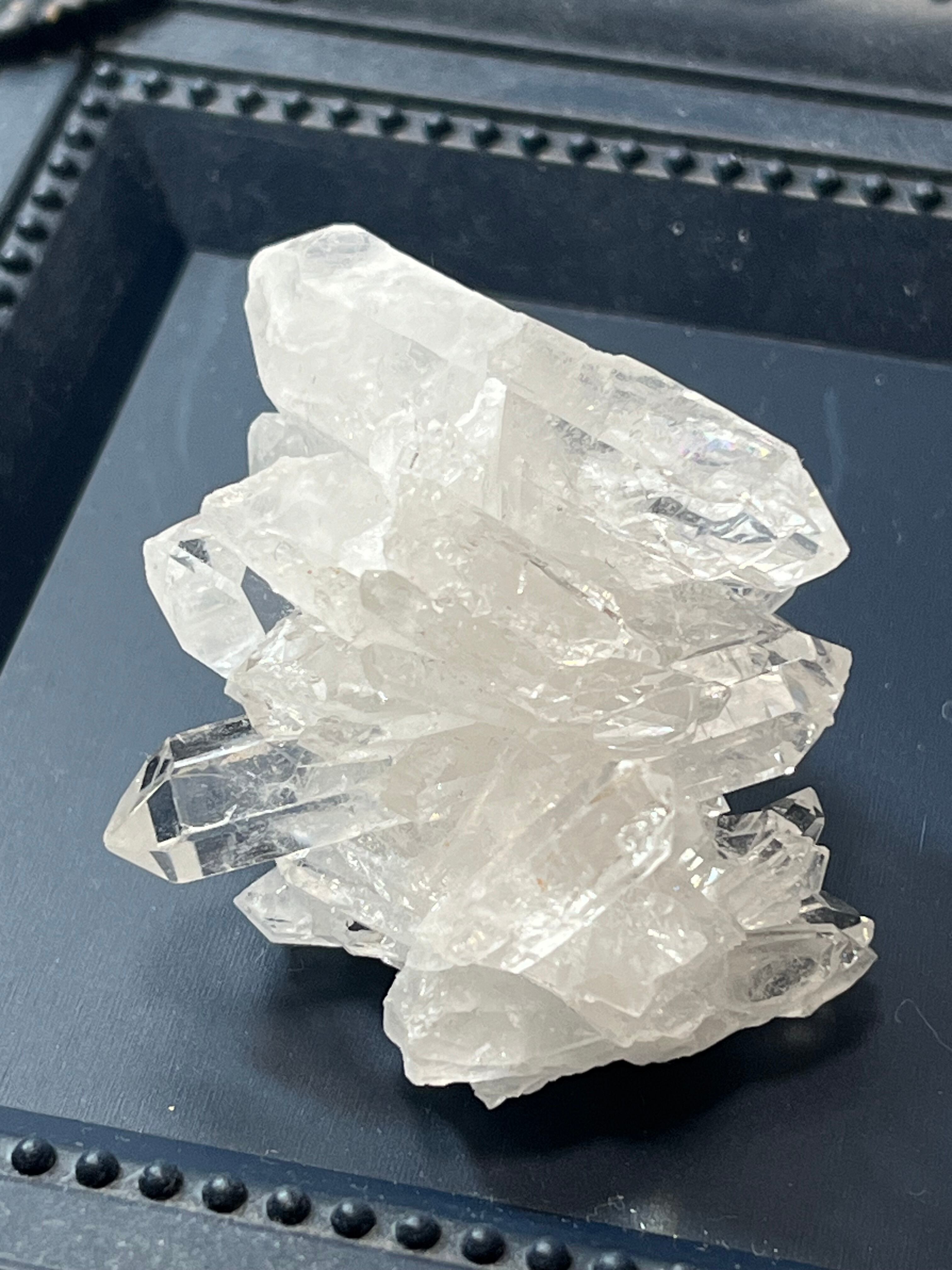 比類なき透明感とシャープなエッジが特徴の アーカンソー水晶クラスターは、ジュエリーのような美しさを纏い、神聖な輝きを放ちます。